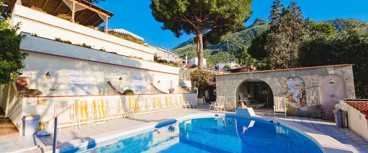 Pięknie położony, na wzgórzu z widokiem na morze, w otoczeniu śródziemnomorskiego ogrodu, to wymarzone miejsce na słoneczny odpoczynek i regenerację. Na miejscu jest aż 7 basenów, w tym 2 z wodą termalną i 2 w centrum spa, które oferuje również szeroki wachlarz zabiegów pielęgnacyjnych i leczniczych. Goście mają do dyspozycji restaurację z kuchnią włoską, wykorzystującą owoce i warzywa z własnych upraw oraz bar, gdzie można skosztować win z prywatnej winnicy – doskonały sposób, aby poznać Ischię „od kuchni”. Warto także połączyć wypoczynek ze zwiedzaniem i wybrać się do pobliskiego Casamicciola Terme, nieco dalej do Forio – najstarszej miejscowości na wyspie lub słynnego Zamku Aragońskiego.