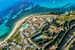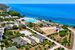 Około 200 metrów od głównej części obiektu. Wygodna ścieżka piesza oraz całodzienna usługa transportu busem. Prywatna plaża jest podzielona na dwie części. Pierwsza z nich to szeroka strefa z drobnym, białym piaskiem, gdzie rozmieszczone są parasole i leżaki. Druga część to plaża kaskadowa – zaczyna się również od piaszczystej przestrzeni z parasolami, a bliżej linii brzegowej przechodzi w żwirowe dno morskie, wyposażone w pływające platformy ułatwiające bezpieczne wejście do wody. Bezpłatny zestaw plażowy: dwa leżaki i parasol na pokój. Oznaczona "Błękitną flagą".