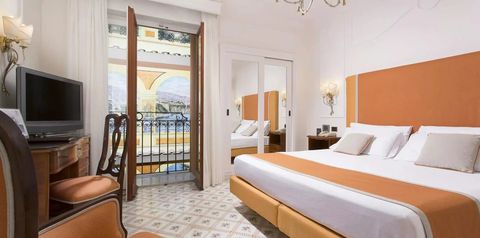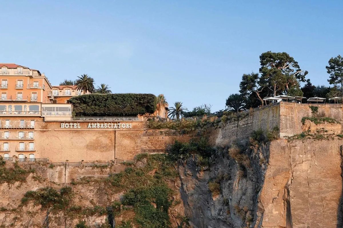Marzysz o porannym cappuccino z widokiem na Wezuwiusz? W Grand Hotel Ambasciatori to codzienność! Ten elegancki hotel położony jest na skraju klifu, z którego windą zjedziesz prosto na prywatny pomost z leżakami nad czystym morzem. Czekają tu na Ciebie 3 restauracje, 2 bary oraz pokoje, w których przestrzeń i styl idą w parze z bajecznymi widokami. A gdy zatęsknisz za atmosferą miasteczka – centrum Sorrento jest zaledwie kilkanaście minut spacerem.