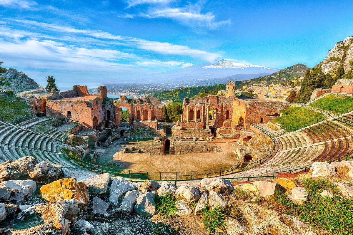 Po śniadaniu przejazd na Etnę – największy i najwyższy czynny wulkan w Europie. Wjazd na wysokość ok. 2000 m n.p. m., spacer po jednym z wygasłych kraterów oraz opcjonalnie możliwość wjazdu specjalnym busem terenowym na wysokość ok. 3000 m n.p. m., w pobliże głównego krateru (płatne dodatkowo). Przejazd do zawieszonej na skałach Taorminy – najsłynniejszego kurortu na wyspie. Spacer po fascynującym starym mieście, wizyta w Teatrze Antycznym - najpiękniejszym starożytnym, greckim teatrze we Włoszech, skąd rozciąga się wspaniała panorama na Etnę i wybrzeże Morza Jońskiego. Powrót do hotelu na nocleg. (Trasa ok. 160 km). Dzień 4