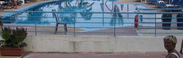 za ogrodzeniem basenu jest ruchliwa ulica, ogród za hotelem zaniedbany, nie dający się porownać z ogrodem w hotelu sieci El Greco- po drugiej stronie ulicy. W morzu nie wolno się kąpać, są mocne prądy, a czesto woda zanieczyszczona jest mazutem. Jedzenie dobre, bez ograniczeń, kazdy znajdzie smak.