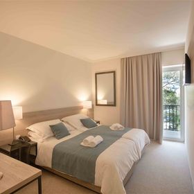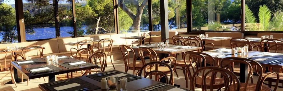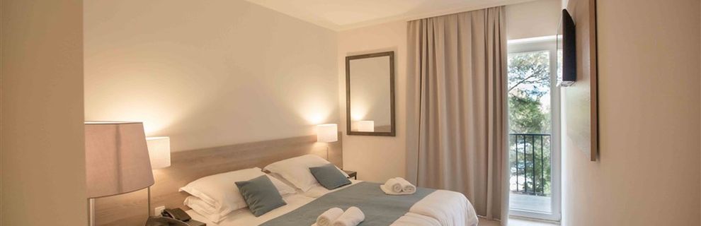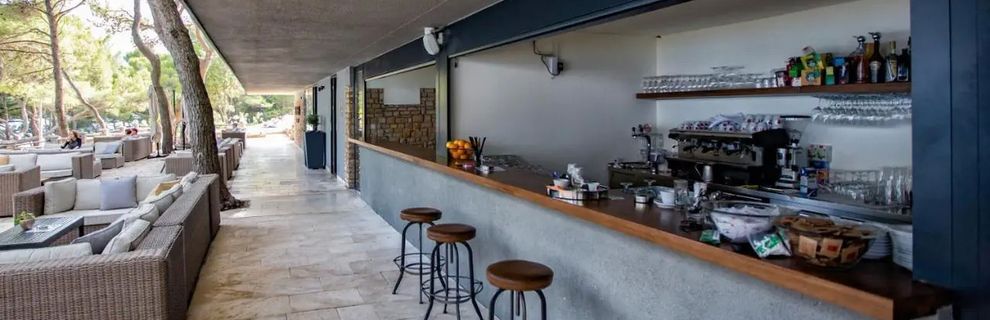 hotel w lesie piniowym,dużo cienia.300m od hotelu dzikie,piękne kąpieliska.Jedzenie i wino świetne.