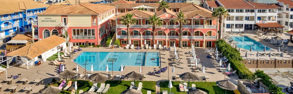 Byliśmy wraz z mężem w Anastasia Beach na dwutygodniowej podróży poślubnej na przełomie maja i czerwca. Gdybyśmy mieli określić swoje wakacje - odpowiedzielibyśmy, że jesteśmy zadowoleni. Owszem, zawsze można na coś ponarzekać, ale w ogólnym rozrachunku wszelkie niedociągnięcia tracą na znaczeniu. Otrzymaliśmy pokój na 2 piętrze (ostatnim) z widokiem na morze, Pokoje stosunkowo duże, łazienka również, choć kabina prysznicowa bardzo (!) malutka. Trzeba zapomnieć o romantycznych kąpielach we dwoje. Jedna osoba biorąca prysznic może już odczuwać ciasnotę. Ale da się przeżyć ; ) Obsługa rzeczowa - nie było żadnych problemów z załatwieniem czegokolwiek. Na powitanie otrzymaliśmy kosz owoców. Wbrew temu, co mówił rezydent Lunch boxy (dość ubogie) wydawane są również gdy samodzielnie wybiera się na wycieczkę. Pokoje sprzątane codziennie (z 2 wyjątkami), pościel zmieniana bodajże raz na 3 dni. Opcja All inclusive zadowalająca - zgodnie z opisem. Serwowano lokalne alkohole: wódka, gin, rum, biały rum, whisky, uzo, piwo. Na barze znajdowała się lista z kilkoma pozycjami drinków, ale istniała możliwość zamówienia jakiejś indywidualnej mikstury. Dla dzieciaków drinki bezalkoholowe. Tutti frutti ; ) Barmani w porządku - jeżeli ktoś szanował ich pracę i ustalone zasady nie robili żadnych problemów. Napoje (adekwatnie do ceny) z dystrybutorów. Ekspres do kawy (kawa ok, niestety mleko bardzo słodkie), herbata czarne, podajnik z wodą. Minusem są mało urozmaicone posiłki (przy pobycie jedno tygodniowym nie byłoby to aż tak uciążliwe). Najbardziej monotonne śniadania - nie zmieniało się nic (ewentualnie jajecznica zamieniana na jajko sadzone). Mimo to nie można wyjść stamtąd głodnym ; ) Dużym plusem jest lokalizacja - hotel przy plaży (jedna z ładniejszych w okolicy). Dodatkowo zatoka Laganas - każdego dnia można zobaczyć żółwie (wystarczy wejść do morza do pasa). Blisko do centrum, a jednak cisza i spokój okolicy. Polecam, hotel adekwatny do ceny!