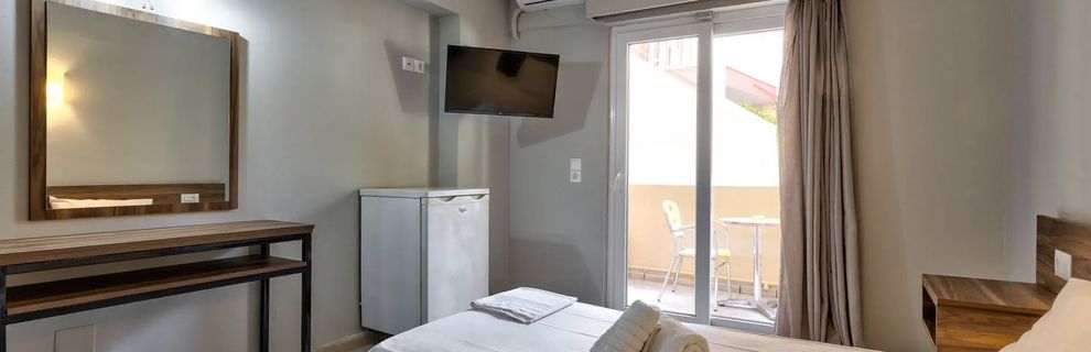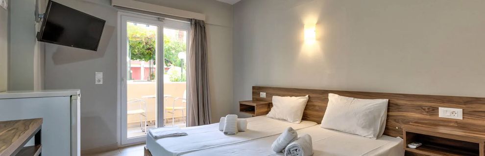 Położenie w pierwszej lini, kameralny i spokojny hotel, dzięki położeniu oddalony od imprezowej części Laganas, a w sezonie musi się tam dziać (my byliśmy w drugiej połowie maja, więc to dopiero początek sezonu), pokoje w miarę czyste.