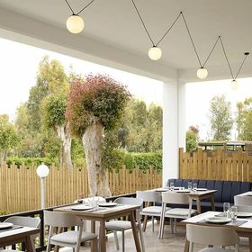 Spokojna okolica z tawernami przy plaży