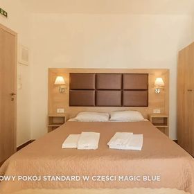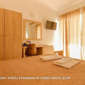 Pokój w części hotelu Magik Blue ,standard na pewno nie 4 a co najwyżej 3* ,Pokój na parterze z pięknym widokiem przy malutkim basenie który przez 10 dni pobytu nie był czyszczony,w pokoju bardzo niewygodny materac z wystającymi sprężynami, w łazience brak miejsca na kosmetyki,żadnej półki, nawet pod prysznicem i w pokoju to samo co jest bardzo wkurzające bo jest miejsce na to zeby powiesić chociaż jakiś wieszak,po za tym ok jak ktoś nie ma dużych wymagań