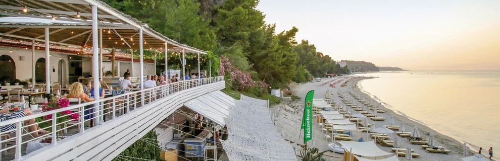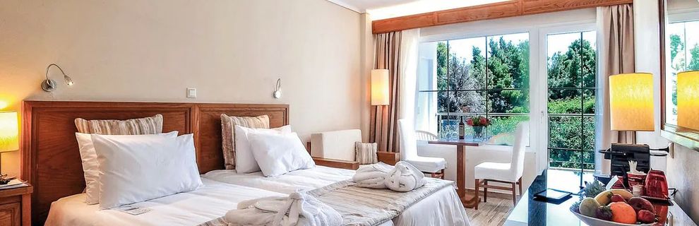 Hotel jest nie drogi na tle konkurencji nawet w okolicy. Ma za to absolutnie najlepszą plażę i wodę. Sporo młodych osób i dyskoteka co wieczór, ale nie na tyle głośno aby w hotelu przeszkadzała, ptaki śpiewają sporo głośniej. Jakiś kilometr półtora dalej jest wielki kompleks hotelowy, grupujący kilka różnych hoteli z plażą, sklepami i wielką rurą odpływową po środku plaży, porostami 10m od brzegu oraz przystanią wiecznie warczących motorówek. Wolę mieć kawałek na piechotę i święty spokój. Połączenie do miejscowości jest niezłe, a taksówki dość tanie. Hotel stanowczo ma duszę, nie jest najmłodszy, ale wciąż ładny i ma piękne ogrody (na przełomie maja i czerwca jest przepięknie). Basen i restauracje na terenie to standard, jest też siatkówka plażowa oraz kort tenisowy i pół boiska do kosza. Całość jest na prawdę na świetnym poziomie. Minus na tle całości to łazienka, czysta ale nie w najnowszym stylu, oraz wkurzający mnie brak hotspota, tylko dostęp po zalogowaniu. Jedzenie jak w całej Grecji nie powala (choć w pobliskiej miejscowości są knajpy z takim żarciem że głowa mała - CCC). Na terenie są jednak drzewka owocowe z lokalnymi żółtymi glupkami, samoobsługa :P Owoce są genialne, a oczywiście do każdego posiłku są tace z mieszankami jabłek, \\\"glupek\\\", czereśni, itp. Podsumowując stanowczo polecam bo nie przeniósł bym się do żadnego innego w promieniu 10km.