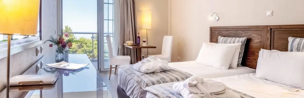 Cudowna plaża to absolutny hit tego hotelu, ale po kolei. Pokoje przyzwoite, schludne, duży balkon z wygodnymi fotelami i stolikiem. Nam trafił się boczny widok na morze 🙂. Łazienka z prysznicem walk in tylko z boczną szybą co było mocno niepraktyczne bo woda rozpryskiwała się na całą łazienkę. Nawet futryna od drzwi do łazienki od strony prysznica była cała rozwarstwiona od wilgoci. Czystość średnia, fugi z czarnym nalotem, na bateriach nalot, na podłodze po sprzątaniu wyczuwalny piasek, balkon chyba w ogóle nie był sprzątany. Za to duży minus. Obiekt położony na rozległym terenie z ładnym ogrodem (drzewka pomarańczy, granatow). Przestrzenie wspólne czyste i schludne. Jedzenie smaczne, może nie ma bardzo dużego wyboru, ale każdy znajdzie coś dla siebie. Pod koniec pobytu troszeczkę brakowało mi urozmaicenia. Można było nadrobić przepysznymi owocami. Desery raczej średnie. Warto tez wspomniec o przepieknym widoku na morze resteuracji głownej, ktory niwątpliwie umilał czas posiłku. W barach przy basenie i na plaży w ciągu dnia były przekąski oraz kawa i pyszne drinki, piwo. Plaża piękna piaszczysta, szeroka, zejście do morza łagodne, woda lazurowa, serwis plażowy i bar w pakiecie all. Niestety momentami brakowało leżaków, trzeba byli rano zarezerwować miejsce, tu obsługa trochę słabo działała bo było sporo leżaków zajętych cały dzień gdzie nikt się nie pojawiał i nie reagowali w żaden sposob. Wieczorem bar z pięknym widokiem na morze czynny do 1 w nocy, drinki i obsługa super. Okazjonalnie muzyka na żywo na bardzo przyzwoitym poziomie umilała wieczory. Innych animacji nie było. W hotelu dużo Macedończyków, Serbów trochę Anglików, sporo Polaków. Pod koniec pobytu pojawiła się liczna ukraińska grupa. Ogólnie obiekt idealny do wypoczynku. Hotel jest na wzgórzu, dojście do plaży dosyć stromą ścieżka lub długimi, stromymi schodami. Trzeba trochę chęci i kondycji zeby je pokonać;) teoretycznie jest winda, ale nie działa. Można też skorzystać z transportu Melexem. Warto mieć na uwadze przy wyborze miejsca wypoczynku. Do najbliższego miasta ok 2 km, kursują autobusy, można też ambitnie dojść na pieszo. Ogólnie 4* tak , ale greckie. Miejsce niezwykle urokliwe, pięknie położone, dla nas idealne na wypoczynek i poczucie greckiego ZIGA ZIGA.