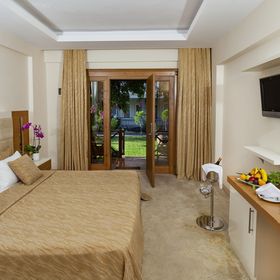 Pokój i łazienka małe, ciasne,sprzątane powierzchownie, prawie wcale. Częste braki ciepłej wody, woda wylewająca się do pokoju po wzięciu prysznica. Tunel prowadzący do drugiej części hotelu jest za niski, przy wzroście 191 cm szoryje się głową po suficie, przejście górą przez jezdnię niemożliwe - zamknięte na klucz drzwi wejściowe. Plaża bardzo mocno kamienista, na pewno nie dla dzieci. Leżaki przy plaży bardzo niewygodne. Jedzenie niezbyt dobre, dość monotonne i zbyt pikantne.