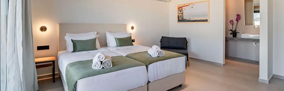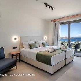 Czysty, dwupoziomowy, nowiutki pokój dla 3 dorosłych i 2 dzieci, oddzielne łazienki, WiFi na całym terenie. Nowe tv z netflixem. Piękny widok na zatokę. Polskie animatorki i Rezydnetka więc wszystko do załatwienia bez problemu. Wycieczki na Santorini i Spinalonge super. Jedzenie w porządku. Hotel na wzgórzu, więc trochę schodków jest. Zjeżdżalnie na basenach spełniły oczekiwania dzieci :)