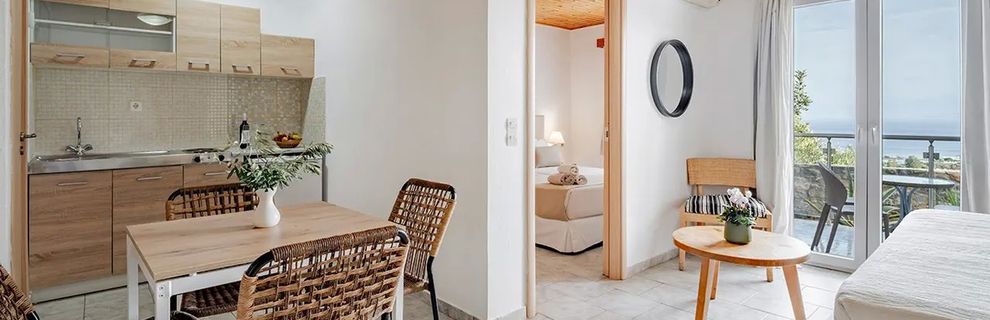 Hotel położony jest na wzgórzu, co daje piękne panoramy - na morze, zatokę Elounda i otaczające góry. Do pokoi dowozi meleks- starsze osoby mogę mieć problem z poruszaniem się po hotelu. Mimo, że jest trochę oddalony od plaży i centrum, bus hotelowy dowozi do połowy górki, potem jest tak stromo że bus zawraca :D Duże pokoje z ankesem kuchennym są w najżywszym punkcie, najdalej od restauracji i lobby.
