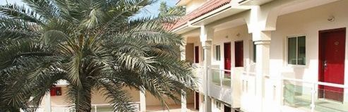 PLUSY TO: ładny ogród, zadbany, bar posrodku ogrodu, dobre zimne piwo przy barze, transport do DUBAIU(pod Mall of Emirates) oraz do SHARJY za darmo,