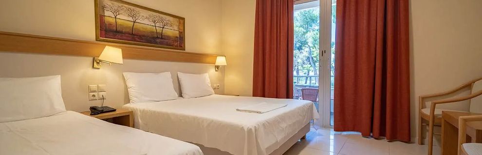 Hotel idealnie nadaje się dla rodzin z dziećmi. Super animacje dla dzieci i dorosłych przez caly dziń, wieczorem mini disco w sezonie trwa 1 godzinę we wrześniu już 30min później bingo albo quiz dla dorosłych, jeden raz byl wieczór grecki ale bez szału. Polskie animacje dla dzieci (...) najlepsi. Transfer do hotelu promem.(...) Byliśmy z niemowlakiem i też bez problemu dostaliśmy łóżeczko niemowlęce. Pokoje zadbane przestorne, codziennie sprzątane. Teren chotelu również bardzo zadbany, piękna rosliność, rosną granaty, Oliwki, cytrynki. Woda w basenie trochę zimna najzimniejsza w brodziku ale dla dzieci to nie był żaden problem. Dojście do morza drogą asfaltową ale z wysokie górki. Plaża piaszczysta i płytka brak parasoli i leżaków we wrześniu.