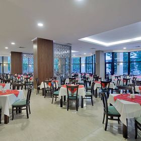 Położony na uboczu z pięknym zadbanym ogrodem. Leżaków na plaży i przy basenie bardzo dużo. Fajne zejście do morza mimo żwirku. Polecam zabranie odpowiednich butów. Bardzo miła obsługa szkoda, że można z nimi rozmawiać tylko po rosyjsku nawet w recepcji może dlatego, że 99% to Rosjanie .Bardzo duża różnorodność posiłków. 3 bary czynne od 10 do 24. Nie ma nigdzie kolejek mimo dużej ilości wczasowiczów
