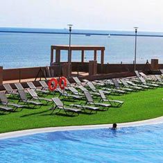 Hotel ma kilka plusów i mnóstwo minusów. Na plus na pewno duże pokoje: osobna sypialnia i salon a nawet osobny aneks kuchenny. Dwa balkony. Piękny widok na ocean. Dosyć blisko duza szeroka plaża. Na plaży ogromne muszle. Hotel na totalnym odludziu jeśli ktos chce odpocząć na pewno odpocznie bo w okolicy nie ma nic do zwiedzenia żadnych sklepów ani restauracji. Brak lezaków w czerwcu na plaży. W hotelu mnóstwo Hiszpanów. Bardzo głośne rodziny Hiszpańskie. Animacje tylko po hiszpańsku. Obsługa nie mówi po angielsku bardzo trudno sie dogadać nawet proste zdania typu red wine czy coffee with milk. Trzeba sie ratować google tłumacz... Jedzenie bardzo niesmaczne mimo że wydaje sie ze jest duzy wybór to nie ma w czym wybierać. Najlepsza była pizza. Bardzo dużo marynowanych niesmacznych dodatków. Na śniadania odziennie to samo. Pomidory bardzo słabej jakości. Wędliny i sery najgorszej jakosci jaka moze być. Napoje z podajników niesmaczne i sztuczne. Do kolacji wino lub woda podawana przez kelnerów o ile zrozumieją co sie do nich mówi. Lunch kolacja większy wybór jednak jedzenie niesmaczne często kotlety mielone z tego co zostało. Stoliki w restauracji przecierane przez kelnerów szmatka ktora nie była wcale czysta. Resztki okruszki ze stołu kelnerzy zrzucali pod stół. Brak możliwości wypożyczenia auta w bliskiej okolicy.