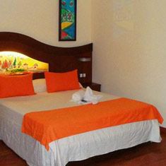 Blisko piaszczystej plaży, gdzie jest w miarę spokój. Duże pokoje, z czystością bardzo różnie.