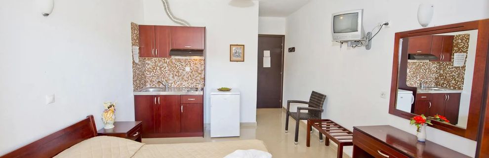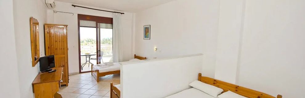 Pokój- studio z aneksem kuchennym- bardzo ładna i wygodna łazienka, nowe meble, lodówka, taras ze stolikiem krzesłami. Bardzo blisko centrum miasta Kriopigi- typowo turystycznego ze sklepami spożywczymi i z suwenirami, restauracjami, Pub-ami otwartymi do późnych godzin nocnych. 900m do plaży- powrót pod górę(ale można przejechać ciuchcią turystyczną pod same drzwi hotelu) Świetny basen z czystą wodą, Prysznic, leżaki i parasole przy basenie bezpłatne, jest też dobrze wyposażony barek i bezpieczny brodzik dla dzieci. Pokoje sprzątane raz na 3 dni, wraz z wymianą ręczników. W mieście można wynająć samochód, skuter, wykupić wycieczki fakultatywne w rejonie Półwyspu Chalcydyckiego.