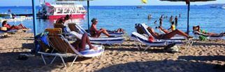 daleko do plaży, która jest mała, woda w morzu bardzo brudna (wystarczy zanurkować a widać, że są tam rury ze ściekami - pływają pampersy, podpaski i cały syf tego świata!)