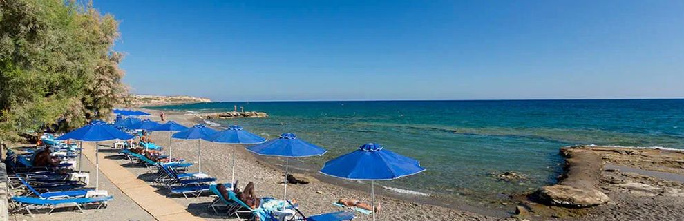 Bezpośrednio przy żwirowej plaży, (leżaki i parasole darmowe ), w spokojnej okolicy, na południowym wybrzeżu 5 km od miasta Ierapetra. W sąsiedztwie przystanek komunikacji lokalnej. Lokalizacja doskonała dla osób preferujących wypoczynek w łagodnym, południowym mikroklimacie z dala od głównych ośrodków turystycznych. W mieście Ierapetra warto zobaczyć wenecką fortecę portową, Dom Napoleona i Muzeum Archeologiczne. Podczas wypoczynku warto też wybrać się na pobliską wyspę Chrissi, na którą można dotrzeć statkiem z portu w Ierapetrze. Wyspa ceniona jest szczególnie za unikatową roślinność i doskonałe warunki do kąpieli zarówno słonecznych jak i morskich.