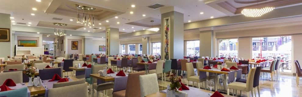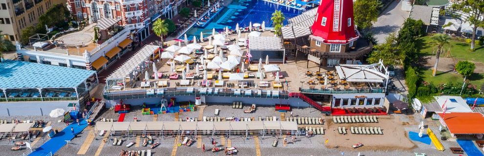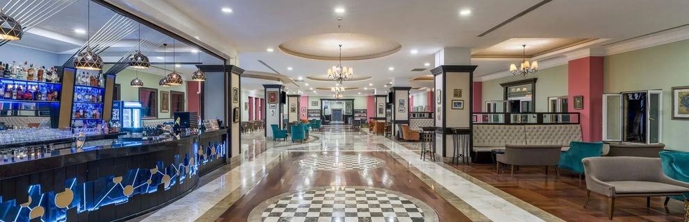 Trzeci pobyt w Turcji i wielkie rozczarowanie. Na folderach hotel robi dobre wrażenie ale rzeczywistość okazała się zupełnie inna. Hotel po remoncie, ale widać upływ czasu. Baseny obskurne, w niektórych miejscach odpadał tynk ze ścian, brudne poduszki i leżaki. W dzień hotel nie wyglądał za dobrze i czysto. Bar przy basenie tragedia, na poziomie hotelu 3*. Bar na molo podobnie. Beach bar otwierany po północy bez komentarza. Poziom ultra all inclusive na miernym poziomie tzn. napoje i soki z syropów ( automaty), sam cukier. Soki w kartonach za dodatkową opłatą. Alkohole importowane w tej opcji tylko w 2 barach: Smirnoff, Bacardi, Ballantine\'s i więcej nie widzieliśmy. I to nie zawsze do dostania w godzinach wieczornych. Czas oczekiwania na złożone zamówienie poza wszelką krytyką. Bar na plaży ( 00-7.00 ) odwiedziliśmy raz i to dosłownie na kwadrans. Napoje alkoholowe wyłącznie ich produkcji. Bezalkoholowe z automatów. Bardzo nieprzyjemny zapach wewnątrz . Ławki na zewnątrz podobne do spotykanych u nas na parkingach leśnych. Natomiast nie można mieć zarzutów do cukierni ( smaczne i świeże ciasta lepsze niż na kolacji ).Irytujące było zamykanie lokalu 2 godz. przed końcem mimo obecności klientów. Co do klientów hotelu: 1/3 Rosjan i byłego ZSSR, 1/3 Turków i 1/3 Irańczyków , Po za nami brak Polaków.Kultura i higiena osobista dla Turków i Irańczyków to słowo obce.Wszechobecne wpychanie się bez kolejki. Jedzenie rękoma z pater w restauracji głównej, Chodzenie w tym samym obuwiu do WC i do basenów. Jedzenie posiłków w basenach. Kładzenie nóg na stół razem z jedzeniem. Kąpiel w odzieży mimo zakazu. Mimo wykupienia opcji ultra hotel stawiał bardziej na gości, którzy wykupowali za dodatkowe pieniądze loże VIP przy basenach i na disco. Odnośnie disco muzyka jak na ruskiej dyskotece , co druga piosenka ruska albo turecka. Muzyka techno - własnej produkcji remixy ( choć ją lubimy, to nijaka ). Ogólnie nie polecamy!!! To nie była opcja ultra !!! Ogólnie przereklamowany!!