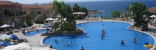 Hotel bardzo dobry i wspaniała obsługa, na pewno polecam go na wakacje dla aktywnych gości. Posiada jednak trochę minusów: hotel nie posiada własnej plaży, jest dostęp do kawałka kamienistej plaży sąsiedniego hotelu (leżaki i parasole płatne). Ogólnie mówiąc to kąpielisko nie wygląda najlepiej. Byliśmy w tym hotelu w czerwcu 2012 r. i jest to już pełnia sezonu. Na basenach bywa dość ciasno, rano trzeba rezerwować leżaki i parasole. Moim zdaniem odbywa się tutaj zbyt głośna animacja przez cały dzień, czasami ma się już dość tej muzyki (chociaż dzieciaki bawią się wspaniale). Nie polecam również pokoju w okolicach basenu głównego, wieczorna animacja trwa do 24.00 (czasami dłużej) i nie ma mowy o spaniu. Pokoje bardzo czyste, sprzątane codziennie. Ręczniki mieliśmy wymieniane co drugi dzień, pościel na dwa tygodnie pobytu mieliśmy zmienianą cztery razy. Jedzenie bardzo dobre, każdego dnia kuchnia innego kraju (cypryjska, grecka, włoska itd.), duży wybór. W okolicach hotelu dość sporo marketów, do Paphos około 6 km (kurs w jedną stronę 1 EUR, bilet całodzienny na wszystkie trasy 3 EUR). Opieka Rezydenta pełen profesjonalizm - częste dyżury w hotelu i kontakt telefoniczny przez całą dobę. Na pewno nie jest to hotel dla kogoś, kto chce w ciszy i w spokoju wypocząć, ale jest to wspaniały wybór dla rodzin z dziećmi i osób, które chcą się zabawić. Polecam gorąco.