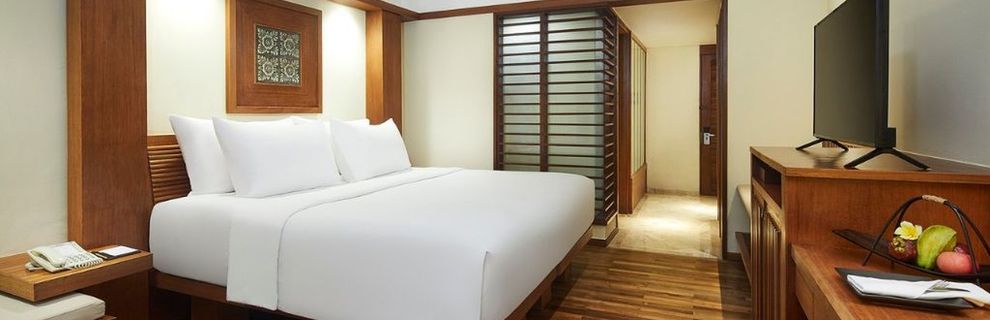 hotel bardzo ładny, pokoje przestronne urządzone w stylu kolonialnym, łazienka duża, kabina prysznicowa, suszarka do włosów, kapcie, sejf. pokój sprzątany codziennie, wymiana ręczników codziennie, dostarczana do pokoju woda butelkowana codziennie - bezpłatna. śniadania w formie bufetu od europejskiego po azjatyckie każdy znajdzie coś dla siebie( owoce, słodycze również) na terenie hotelu duży basen, strefa spa z basenem dodatkowo płatna, restauracje tematyczne oraz restauracja przy plaży można smacznie zjeść, ceny raczej wyższe ale w pobliżu są lokalne restauracje (warung) w dostępnej cenie. obsługa bardzo miła i pomocna hotel godny polecenia