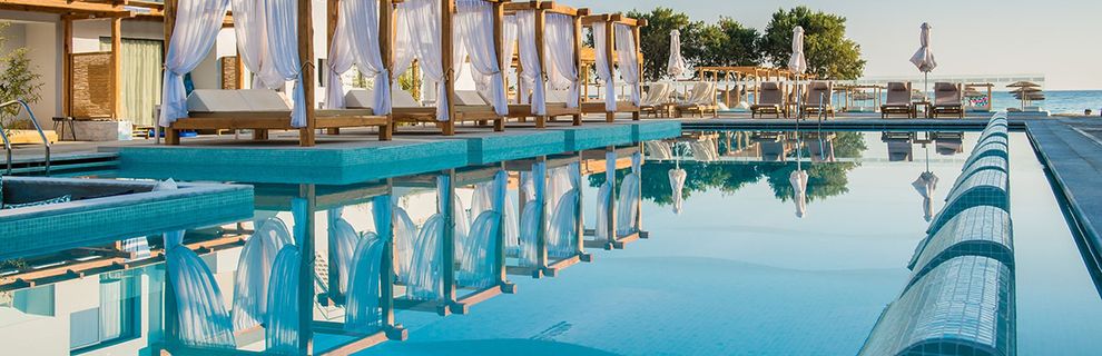 hotel położony bezpośrednio przy plaży, plaża prywatna, piaszczysta, duża liczba leżaków dostępna dla każdego wczasowicza, duża liczba basenów - dwa ogólnodostępne i kilkanaście przynależnych do pokojów, hotel tylko dla dorosłych, bardzo miła obsługa, dbająca o klientów, hotel bardzo zadbany, nowy - z 2017 r.