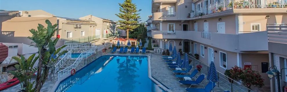 Hotel położony blisko plaży a jednocześnie w cichej strefie. Bliskość lotniska oraz portów w Zakyntos oraz Laganas to dodatkowy atut.