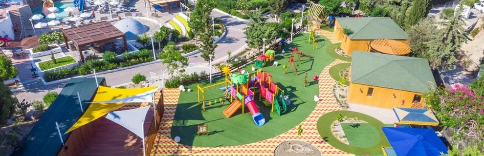 Atrakcje dla dzieci: plac zabaw i zjeżdżalnie wodne.