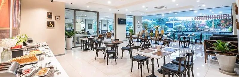 Hotel usytuowany daleko od centrum miasta. Wydostać się można z niego wyłącznie taksówką albo należy pieszo dojść do dość oddalonego przystanku kolejki jadącej do lotniska i przesiąść się na metro. Pokój duży z aneksem kuchennym, ale znać już w nim upływ czasu. Wanna przeciekała i po kąpieli robiła się kałuża wody. Basen na dachu tylko 5 leżaków bez parasoli, siłownia.