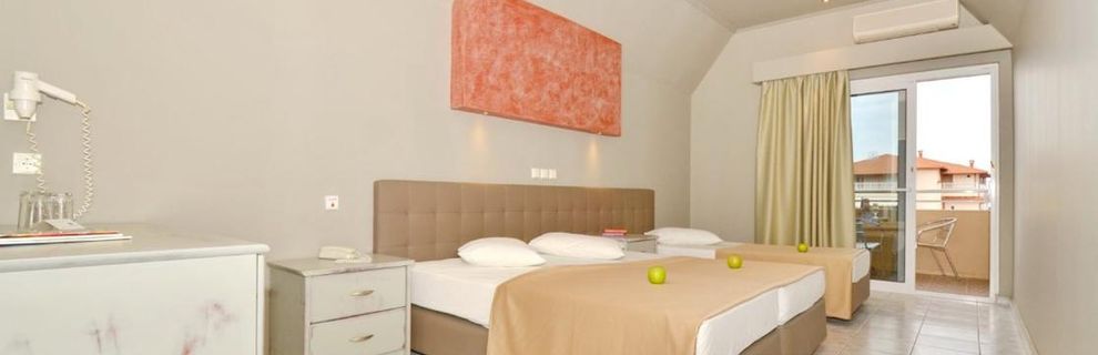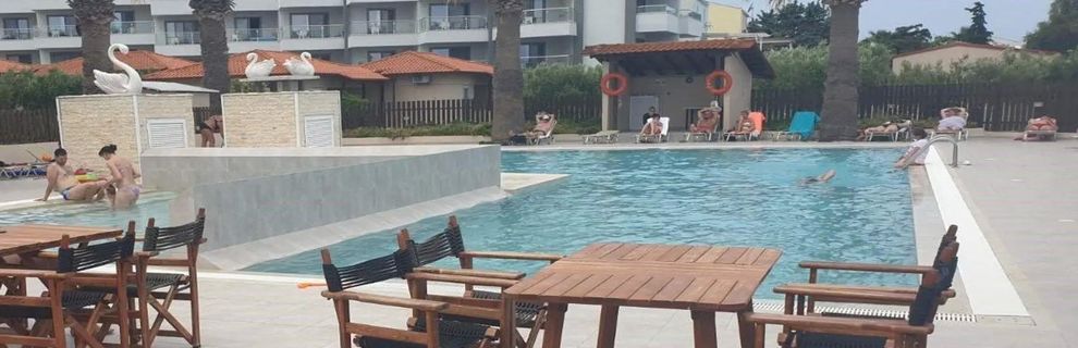 Hotel bardzo dobrze zlokalizowany, tuż przy samej plaży oraz w bliskiej odległości od centrum miasteczka Hanioti (tawerny, przystanek autobusowy, taxi, sklepy itp.) Pokoje bardzo przyzwoite (ręczniki, suszarka,lodówka) - codziennie sprzątane. Hotel ogólnie zadbany z przemiłą obsługą w recepcji. Śniadania i obiadokolacje bardzo monotonne, mały wybór potraw, aczkolwiek wszystko świeże.