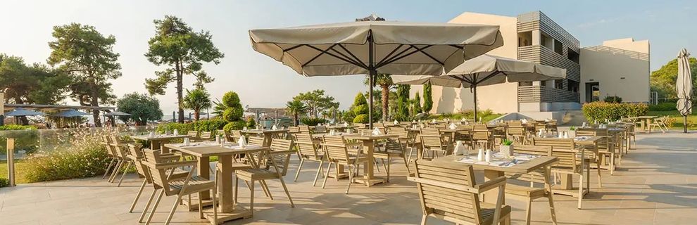 Hotel ładny ,duży kompleks z basenem i blisko do plaży. Nowoczesny i cichej okolicy. Tawerna i bar przy plaży to duży plus. Bardzo polecam