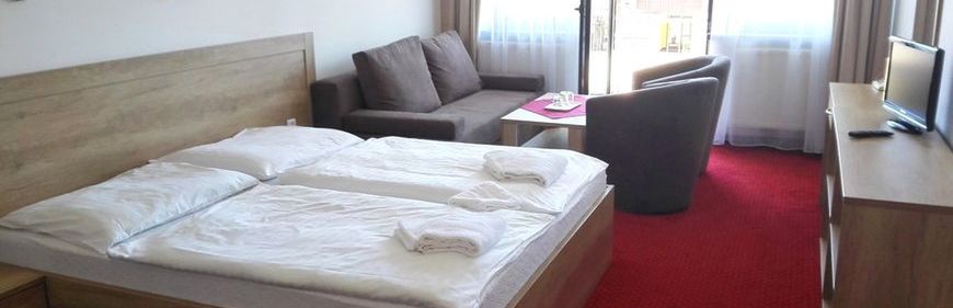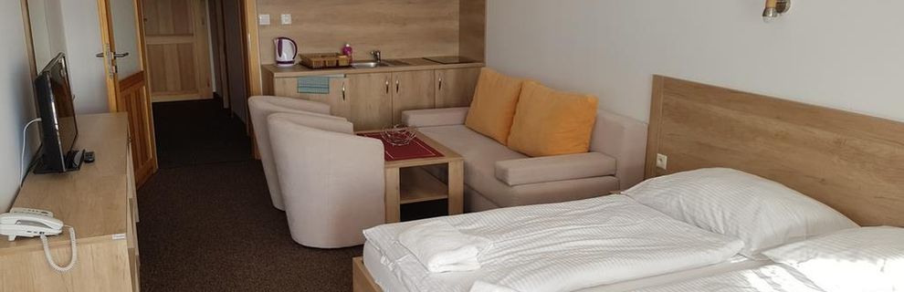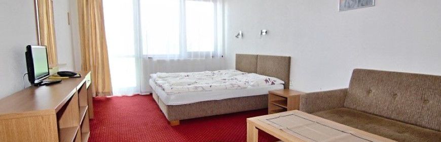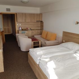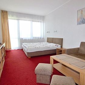 Hotel, chociaż w tym serwisie ma 2*, oficjalnie deklaruje się jako 3* i to jest lekka przesada. W rzeczywistości to będzie 2,5*. Sam hotel (recepcja, zaplecze) może nawet mieć 3*, ale standard pokoi, a w szczególności łazienek to 2* i to w sumie daje 2,5*. Z plusów można wymienić bardzo ciekawą ofertę wellness, tzw. "vitalny svet" - co prawda basen i jacuzzi małe, ale za to wybór saun, komór inhalacyjnych itp. jest całkiem sympatyczny. W hotelu jest też supermarket spożywczy - nieźle zaopatrzony oraz sklep z tekstyliami, zabawkami i pamiątkami - też całkiem przyzwoity. Oprócz głównej restauracji, gdzie są śniadania i obiadokolacje, jest jeszcze "fast food" czynny do 19:00 gdzie można zjeść coś przed obiadokolacją i kawiarnia. Jest też kiosk i punkt sprzedaży wypieków "Fornetti". Złotówki można wymieniać na recepcji i w kawiarni, a na przeciwko hotelu, przy stacji kolejki jest bankomat. Parking hotelowy jest niewygodny (wąskie miejsca parkingowe), monitorowany a nie strzeżony, a kosztuje 160Sk za dobę, więc lepiej skorzystać z parkingu strzeżonego, nie hotelowego, który znajduje się praktycznie przed hotelem i kosztuje dokładnie tyle samo, tylko że trzeba zapłacić z góry a nie z dołu.