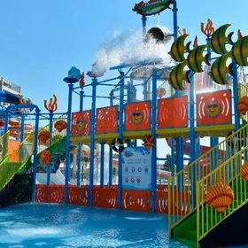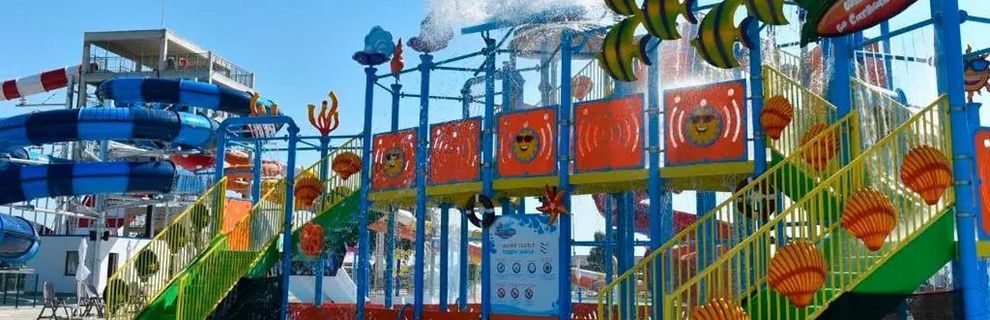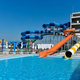 Aquapark ze zjeżdżalniami, sztuczną falą oraz wodnym zamkiem.