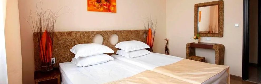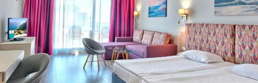 Wybraliśmy się do tego hotelu rodziną 2+1. Był taki jaki chcieliśmy. Pokoje nowoczesne i czyste. Codziennie sprzątane. Klimatyzacja sprawna, cały czas włączona. Duży balkon, lodówka, czajnik. Atrakcji sporo, trzy baseny plus jeden kryty i podgrzewany. Aquapark obok, Park linowy, boisko do tenisa i piłki. Tyrolka 400 m na plażę. Animacje dla dzieci i dorosłych, seanse kinowe. Gry na żetony, dwa stoły do pingponga i bilard. Co do gosci, to głównie Polacy, Rumuni i Bułgarzy. Bez żadnych awantur czy głównych zabaw. Do 23, maks 24. W nocy Można otworzyć balkon i pospać. Wyżywienie ok, bez rewelacji, ale każdy coś znajdzie dla siebie. Bar z przekąskami do podjadania przy środkowym basenie. Alkohole lane w ramach all inclusive to lokalne zamienniki. Nie żałują jak leją. Można kupić orginalne jak ktoś ma ochotę. W okolicy nic się nie dzieje, jakaś stadnina i Bistro za aquaparkiem, ale nie byliśmy. Można taksówką się wybrać do okolicznych miasteczek - balcik albo kawarna, jest tam ogród botaniczny i delfinaroum. Około 35 lewów w jedną stronę. Do plaży spory kawałek, ale jest hotelowy transport. Na plaży już sami płacimy za wszystko. Nam się podobała, klimatyczna. Ogólnie polecamy, bez żadnych ale