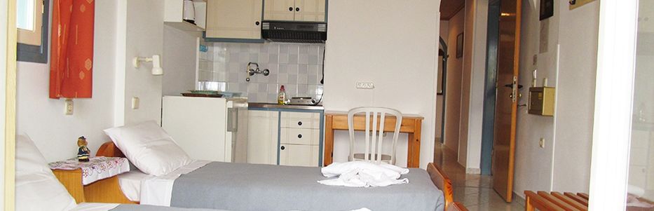 Kawałek drogi od plaży - ma to swoje dobre strony. Nocą można się wyspać. Im bliżej centrum tym głośniej. Bardzo życzliwy właściciel. Skromne pokoje w bardzo dobrej cenie, doskonałe dla osób na diecie bezglutenowej. Można zabrać ze sobą makarony bezglutenowe i gotować na miejscu. Hotel doskonały dla rodzin, które wolą wydać pieniądze na wycieczki i zwiedzanie niż na siedzenie na miejscu. W pobliżu sklepy, tawerny. Polecam bardzo gorąco.