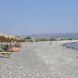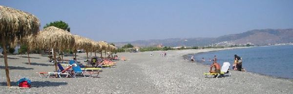 Plaża Nea Chora z tawernami i spokojną wodą