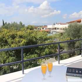 Hotel jest na totalnym (...) , nie ma plaży. Okolica nie przypomina Grecji. Coś co jest nazwane plaża to kamienie pokryte mułem, nie można tam uraczyć błękitnych wód Grecji. Sam hotel czysty, smaczne jedzenie, infrastruktura okej, na dobrym poziomie. Ale formuła all inclusiv pozostawia wiele do życzenia. W beach barze nie obowiązuje. Po 19 na basenie też. Hotel jest oblężony przez turystów z francuskiego klubu, którzy są lepiej traktowani, mają lepszą formułę all i mega uciążliwe animacje