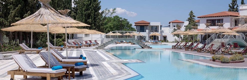 Piękne widoki, hotel składający sie z bungalow - piekny, czysty, usytuowany wsród oleandrów, palm i zieleni. Woda w basenie czysta i ciepła. Leżaki dostępne dla każdego, udostępnione równiez dodatkowe. Jedzenie bardzo dobre, urozmaicone, dużo warzyw, owoców, ciast. Wszystko świeże. Obsługa bardzo miła, pomocna. Animacje w języku francuskim, alkohole i drinki-do wyboru. Polecam bardzo ten hotel. bar na plaży Breeze - rewelacyjny, pieknie rozlokowany, nowoczesny, dostepne za darmo leżaki, parasole, pufy. Piękne, ciepłe i czyste morze. (...)Warto również wybrać się na wycieczkę (samodzielnie autobusem) do miasteczka Eretria, a także przepłynięcie promem na ląd. Grecy są bardzo przyjaźni, każdy nam chciał pomóc, dostawaliśmy mapy miasteczek