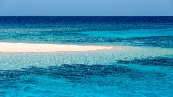 Dzika plaża z białym piaskiem i krystaliczną wodą Morza Czerwonego