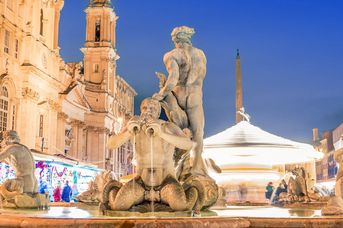 Piazza Navona z fontannami i artystami ulicznymi