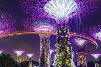 - Gardens by the Bay - futurystyczny park z gigantycznymi sztucznymi "Super Trees" i dwoma ogromnymi szklarniami.